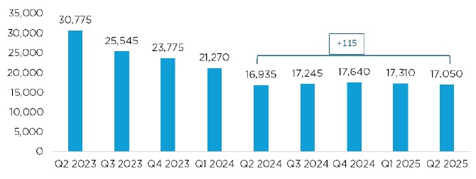 According to Statistics Canada’s Job Vacancy and Wage Survey (JVWS), the number of vacant positions in the combined regions of Capitale-Nationale and Chaudière-Appalaches was 17,050 in the second quarter of 2025, compared to 17,310 in the previous quarter (-1.5%) (revised, seasonally adjusted data). This fluctuation is consistent with the relative stability observed over the past four quarters.
