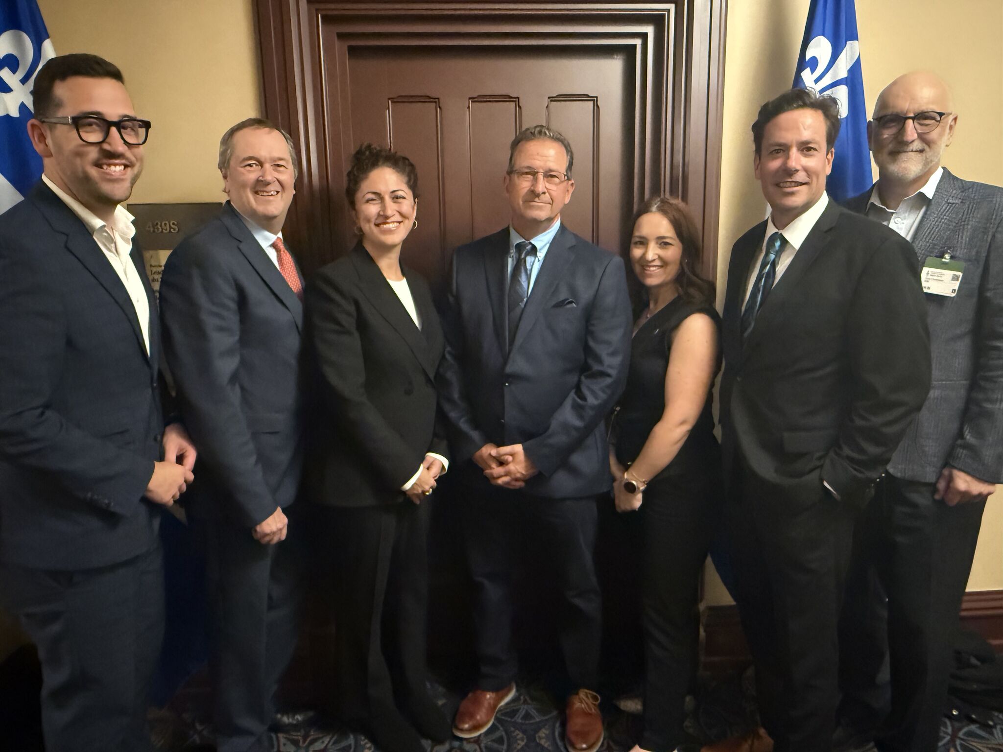 En plus de rencontres avec des représentants d’Innovation, Sciences et Développement économique Canada (DEC), du ministère de l’Énergie et des Ressources naturelles, de DEC pour les régions du Québec, de l’Intelligence artificielle et de l’Innovation numérique ainsi que des cabinets de la ministre de la Santé et de la ministre de l’Immigration, des Réfugiés et de la Citoyenneté, la délégation a pu discuter avec des membres du cabinet du premier ministre Mark Carney. Le ministre des Transports, l’honorable Steven Mackinon, a reçu à son bureau Mme Olga Farman, présidente-directrice générale du Port de Québec, pour une présentation des infrastructures, appuyée par M. Étienne Cummings, directeur adjoint, Affaires publiques et relations avec le milieu.